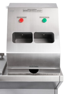 When passing towards the protected area, the worker does not pass without disinfecting his/her hands. The built-in system responds to the simultaneous insertion of both hands into the interior of the device, where aerosol spraying automatically takes place. If the tent procedure is followed, a green light will illuminate, releasing the turnstile and allowing the worker to pass.