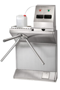 This system consists of the automatic hand sanitizer ADR 01.3 – including a canister shelf with a turnstile TRM 02.S.