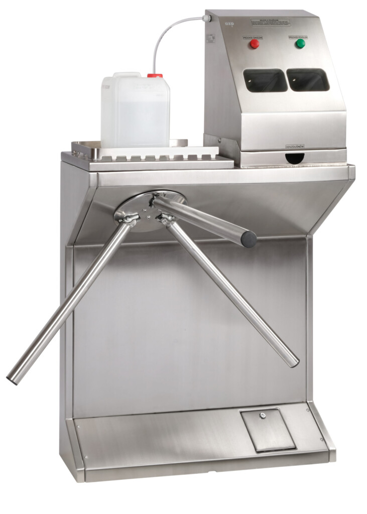 DSO 01.ADR is a guarded automatic hand sanitizer with a connection to the turnstile, which