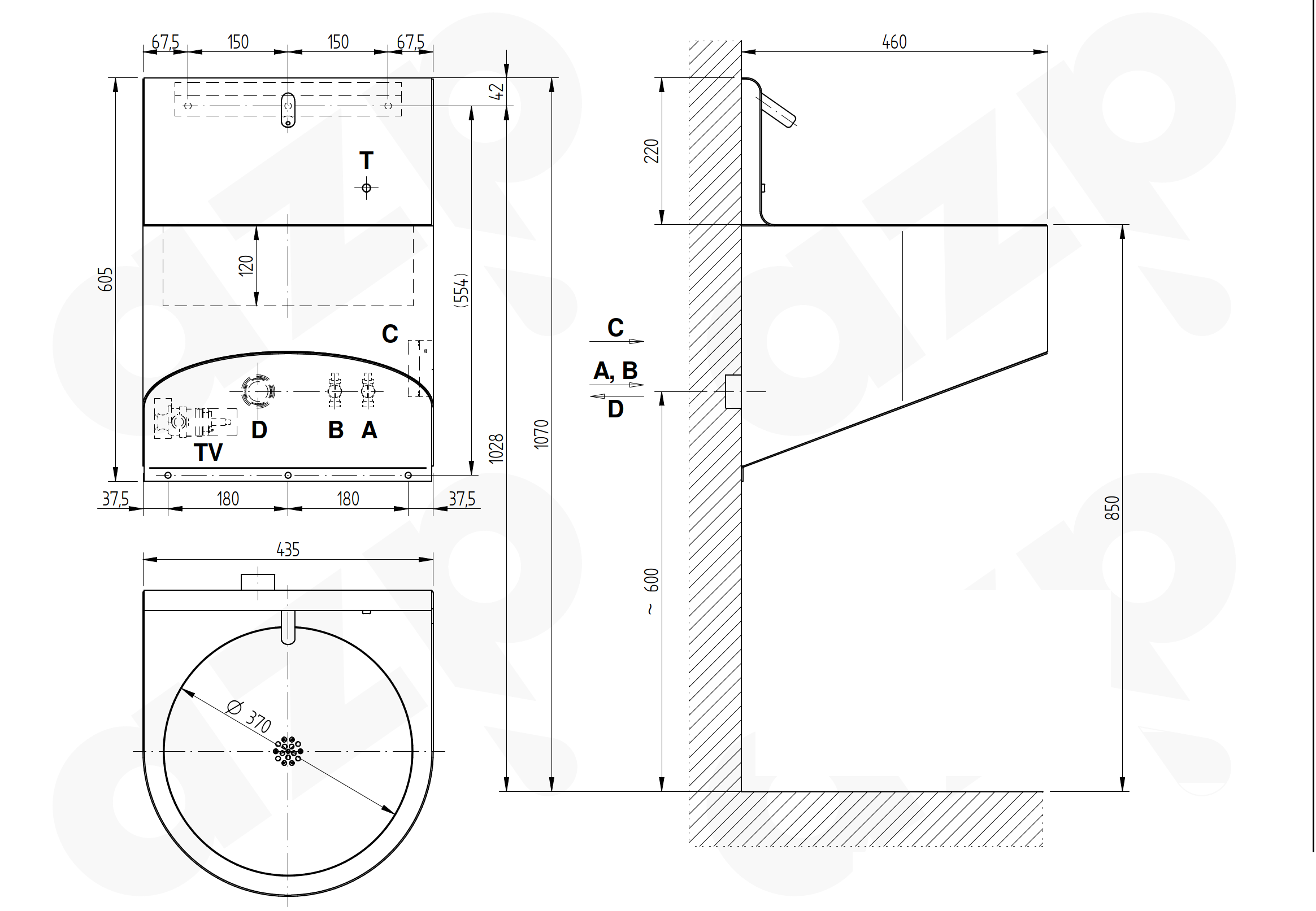 | Inner dimensions of the sink | diameter 370 mm |